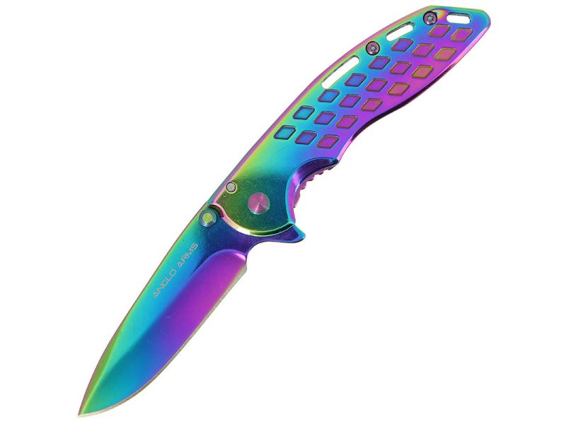 A rainbow effect Ti-Coated lock knife.