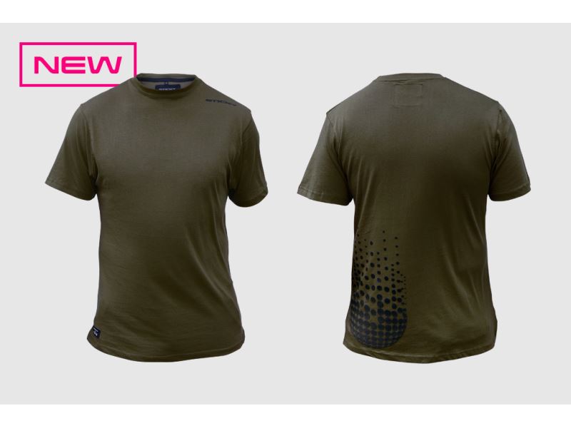 This comfortable green tee is complimented by subtle high build print logos,